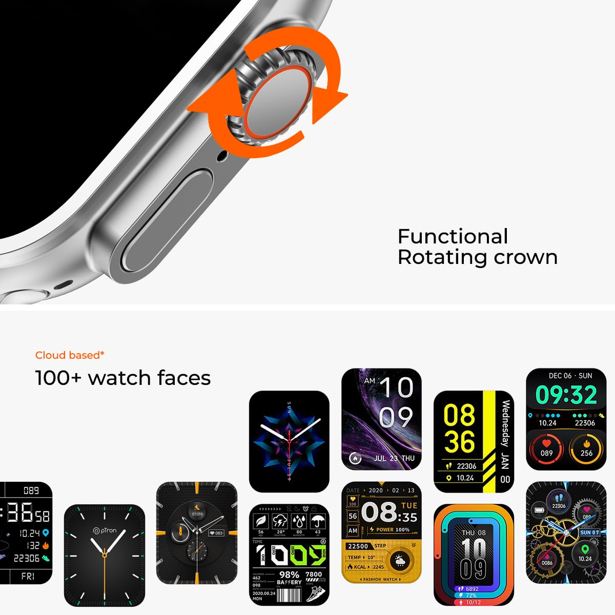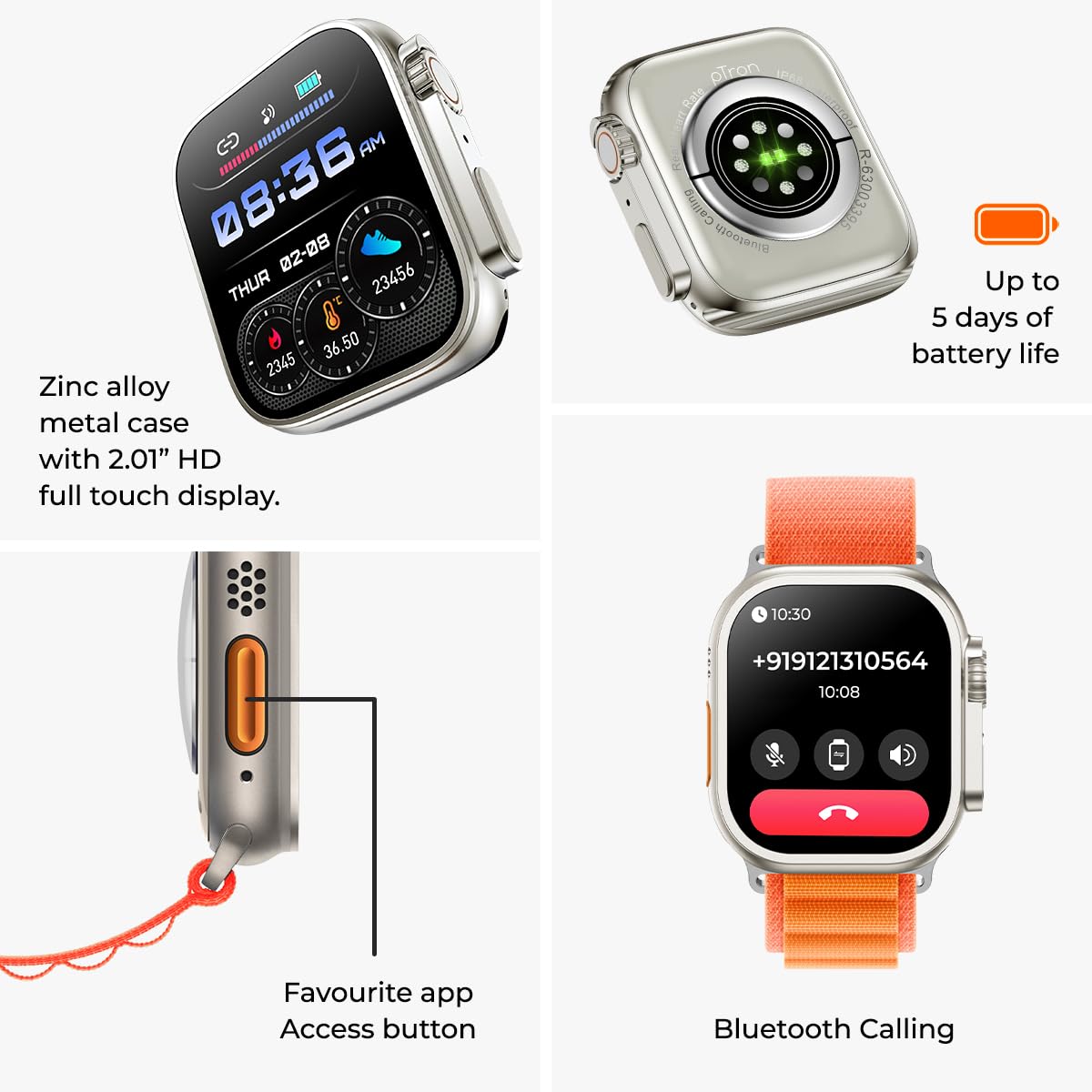 Full Touch 2.01″ TFT Display with 240*292px Resolution | 650 NITS Bright Display | Metal Frame with Digital Working Crown | Dedicated Orange Side Key to Access 1 Most Important Function Set by You