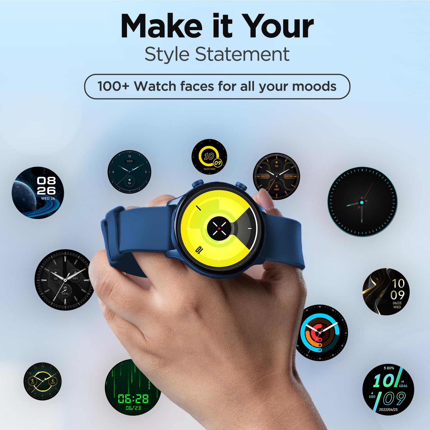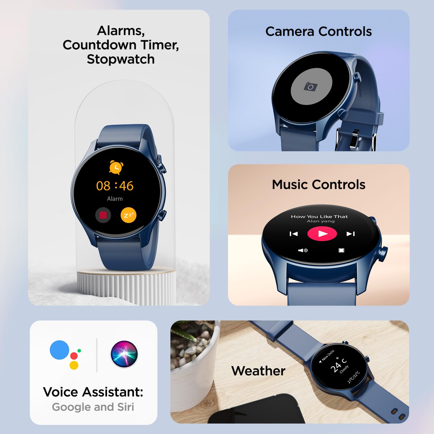 Watch Face Variety: Customize your watch with access to over 100+ Watch Faces, offering a style for every mood and occasion.; Voice Assistants: Interact effortlessly with Google and Siri Voice Assistants, simplifying your daily tasks and queries.