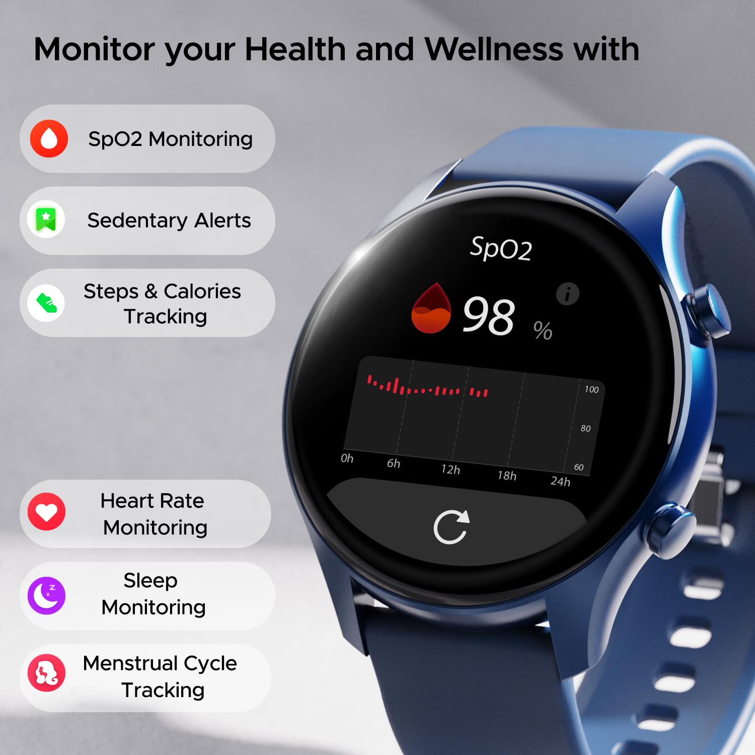 Health at a Glance: Prioritize your well-being with Heart Rate & Blood Oxygen Monitoring, ensuring you stay in tune with your health.