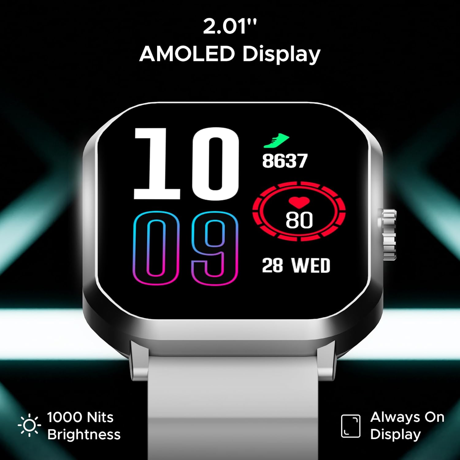 AMOLED Display: Immerse yourself in the brilliance of a 2.01″ (5.10 cm) AMOLED display, delivering vibrant visuals and clarity to enhance your smartwatch experience.;Advanced Bluetooth Calling: Stay connected on the go with advanced Bluetooth calling directly from your wrist, ensuring seamless communication wherever you are.