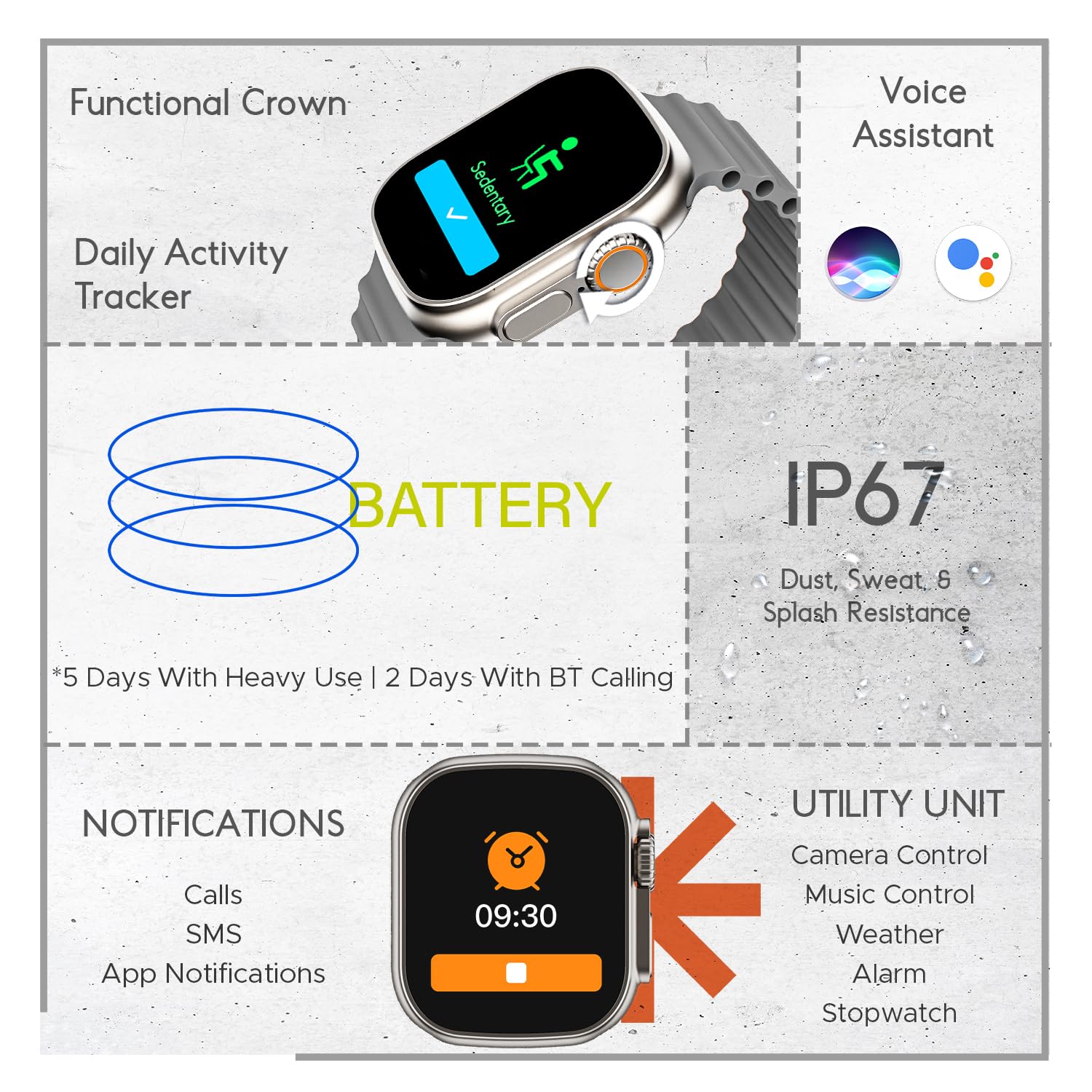 Screen Size- Wave Elevate comes with a big, bold, and sharp screen with a 1.96″ HD Display.;Bluetooth Calling- Calling made convenient with just a tap on Wave Elevate. Save up to 10 contacts, make calls with the dial pad and its superior quality speaker & mic make your experience smooth and clear.