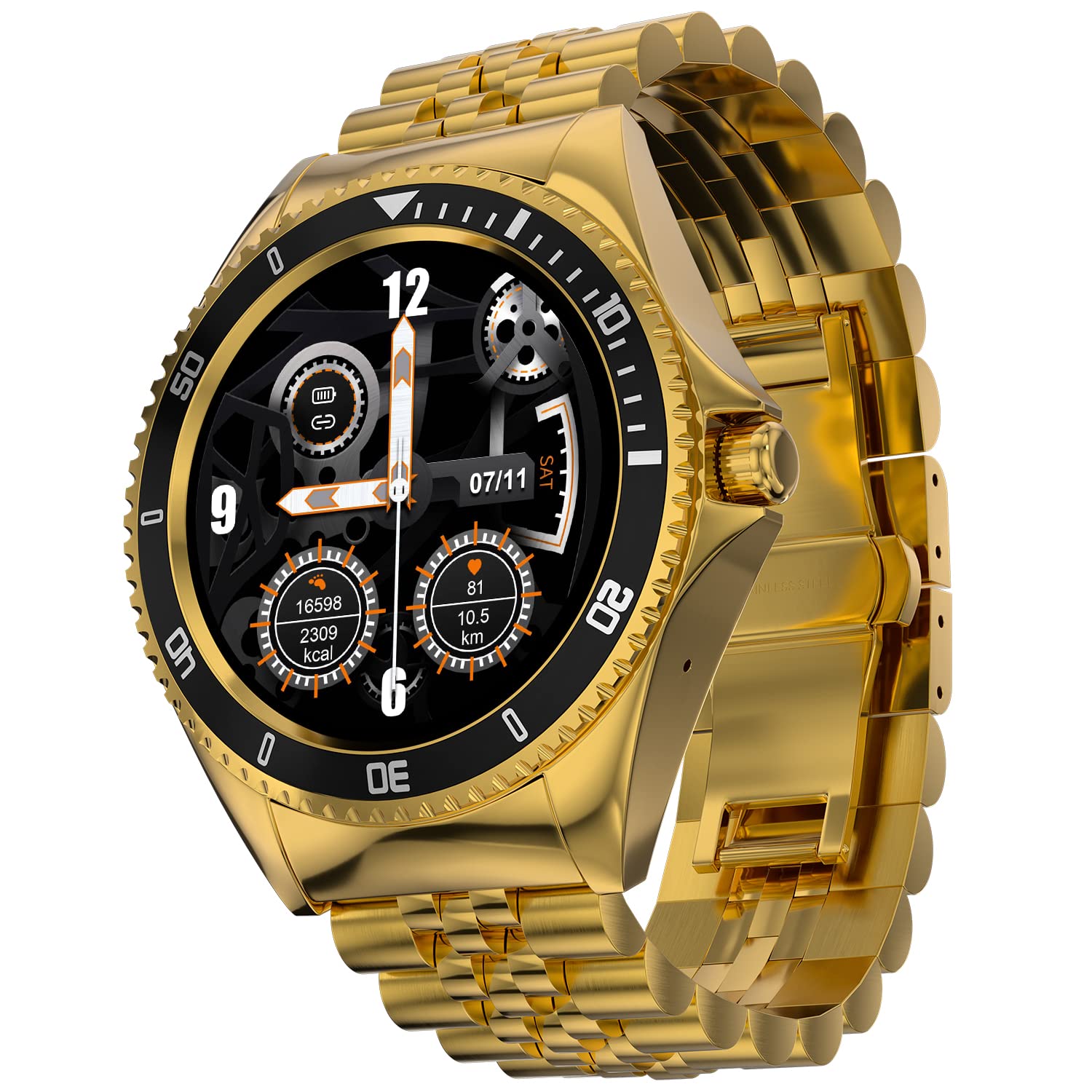 Timeless Style, Unbreakable Strength – Crystal clear visuals on this luxury smartwatch and an unparalleled user experience with the stainless steel design. With the stunning 1.28″ Premium HD Display and 240×240 pixel resolution, this sleek and sophisticated timepiece offers a rich visual delight. 350 NITS Peak Brightness. Built with high-grade stainless steel for unparalleled durability and premium style