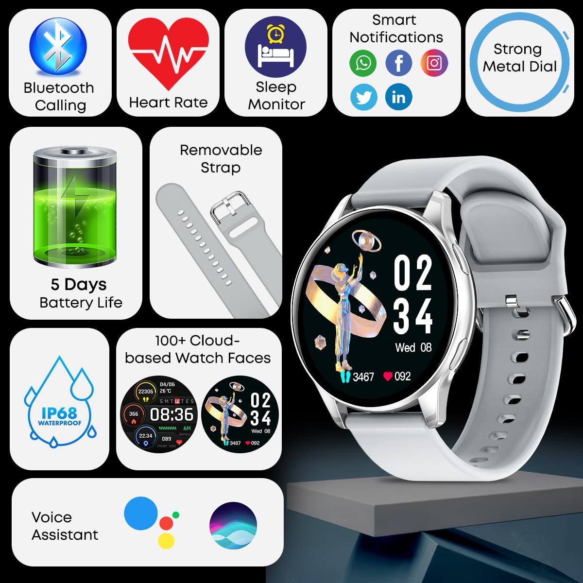 1.32″ Full Touch Round TFT HD Display with 240*240px Resolution | 600 NITS Bright Display Encased in a Metal Frame | Bluetooth Calling Function | up to 5 Days Battery Life* (depends on usage factors)