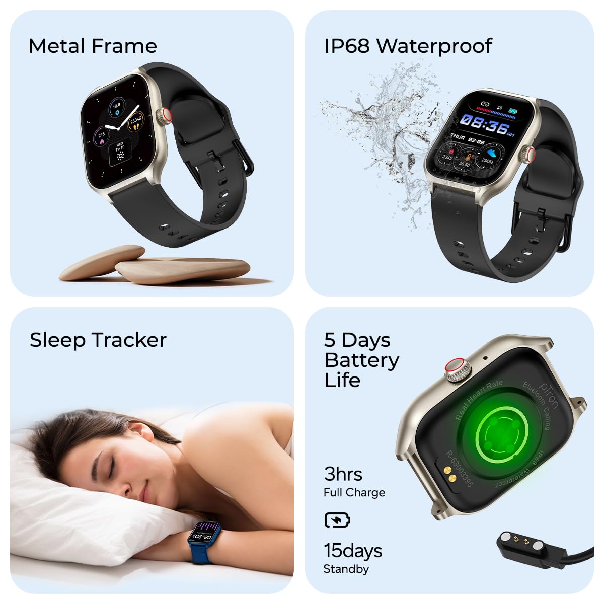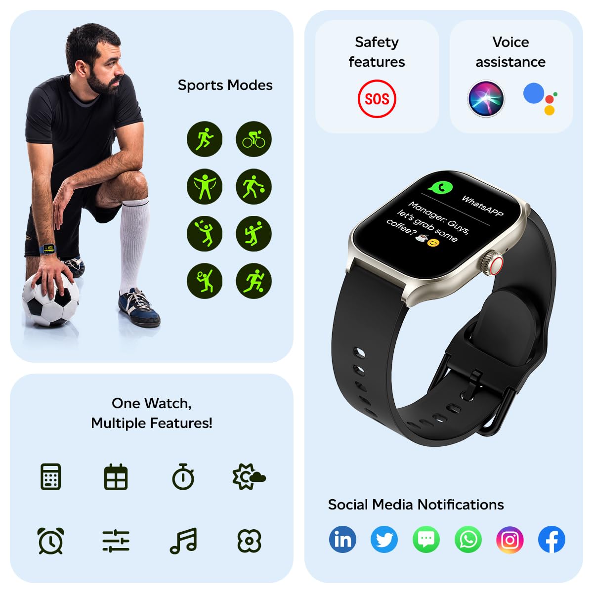Large 2.01″ Full Touch TFT Display with 240*296px Resolution | 600 NITS Bright Display for Clear View | Functional Working Crown |Bluetooth Calls | upto 5 Days Battery Life* (depends on usage factors); Wear Your Force: 8 Active Sports Mode, Health/Fitness Trackers, Real-time Heart Rate Check, SpO2 Check, Blood Pressure Check, Sleep Monitor, Sedentary Alert, Step Count, Calories Burnt & Breathing