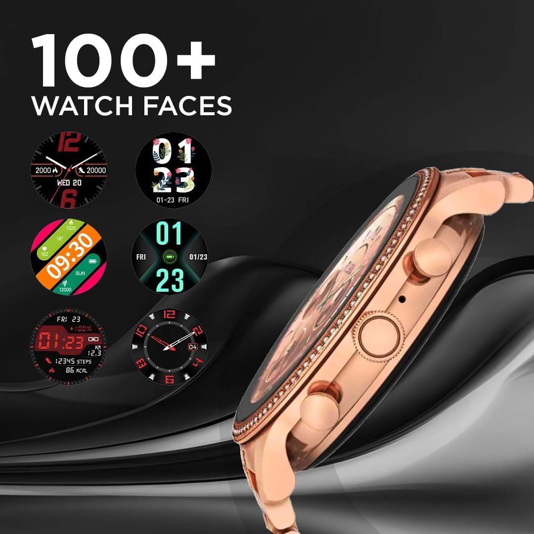 During sports like football, cricket, badminton, rope skipping, swimming, and more, keep track of your steps, calories burned, and miles traveled. Experience the ultimate in elegance and flair with the rose gold watch—the perfect fusion of technology and design.