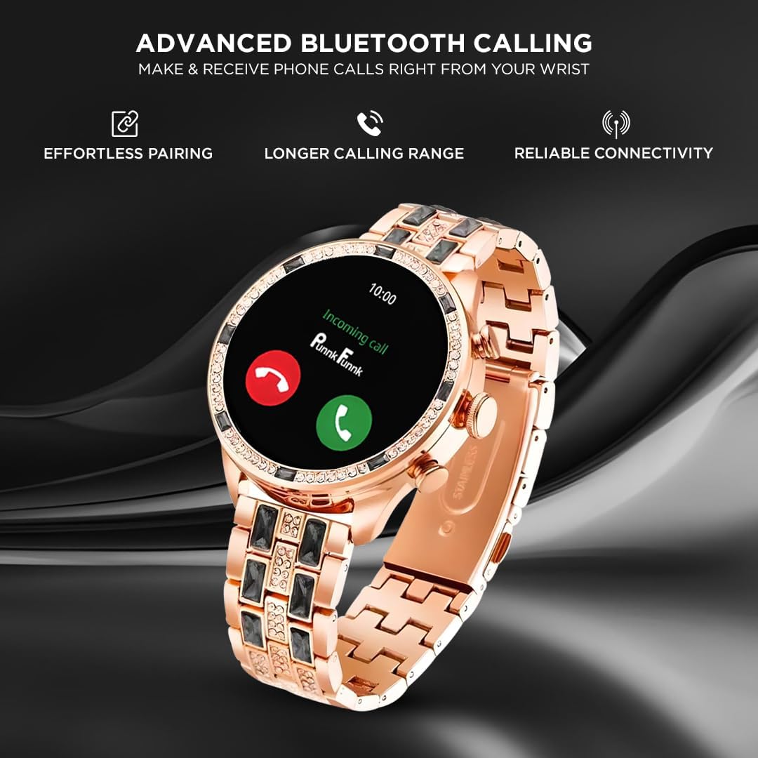 A feminine smartwatch that embodies style and ingenuity. This hyper watch gives an unrivaled rose gold experience with its bold 35MM Big Display housed in a tough titanium case with actual screws and locks.