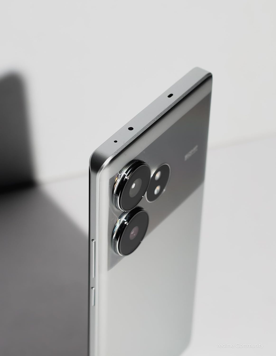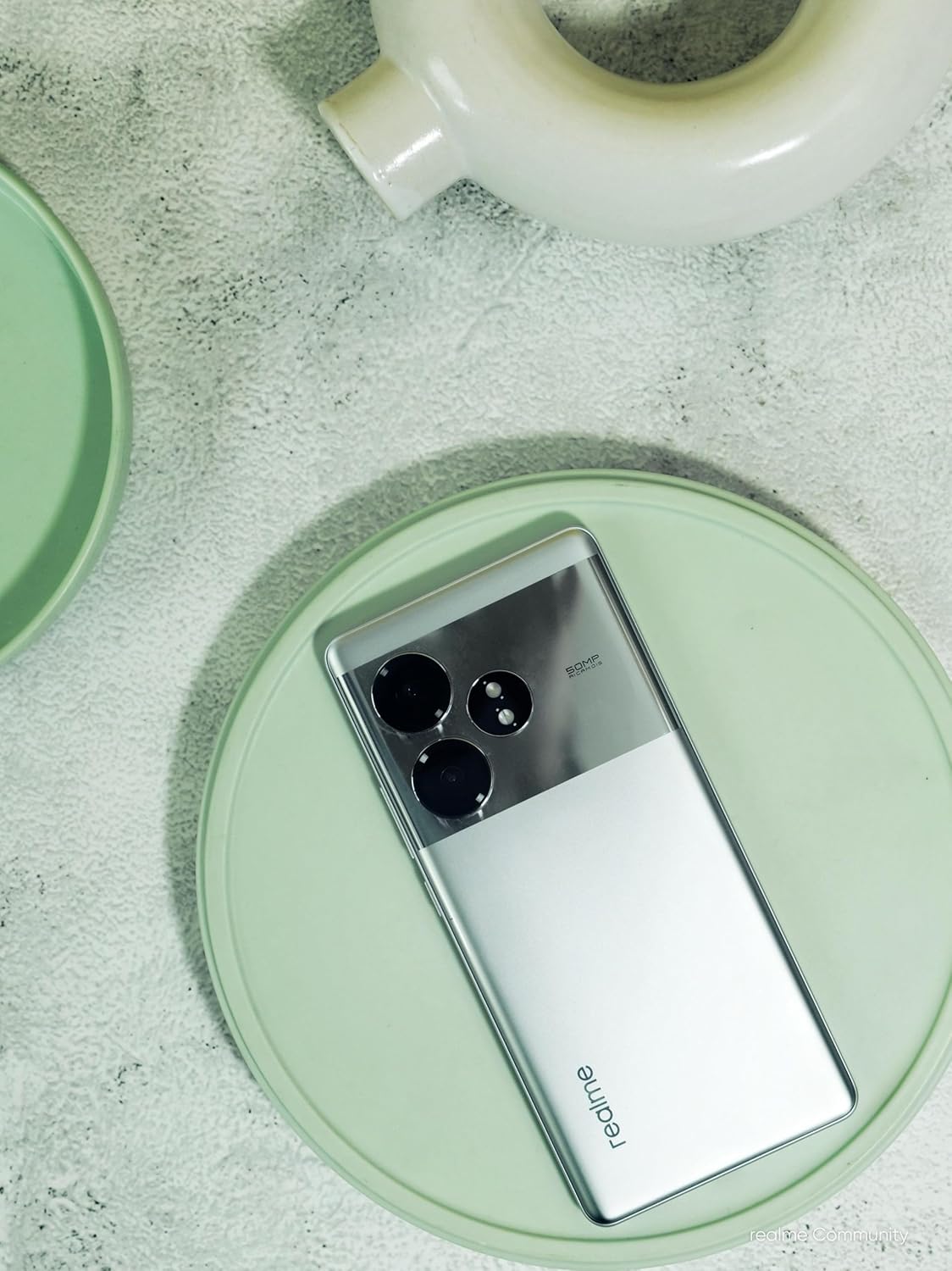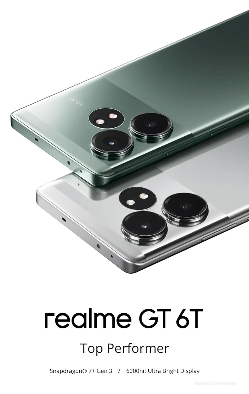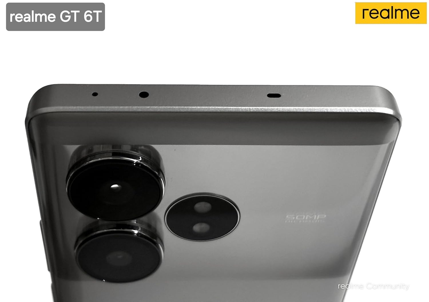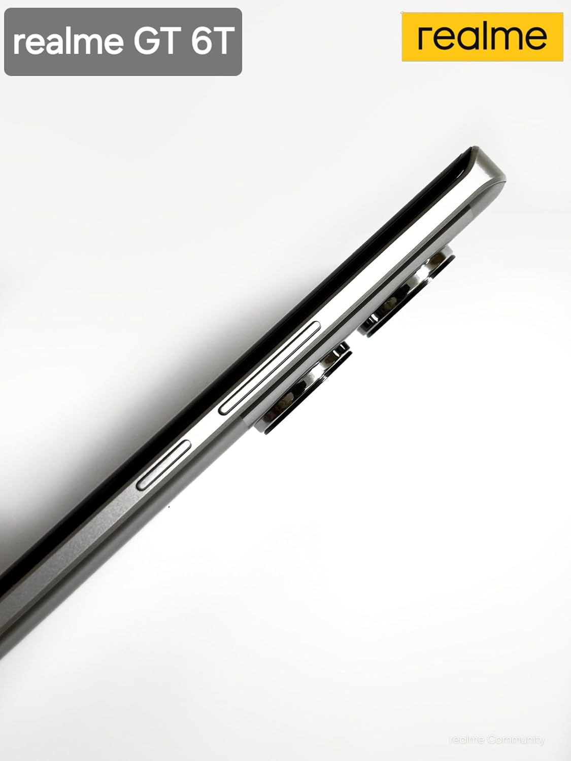 The realme GT 6T features a versatile Dual Camera setup: Main Camera: 50MP Sony LYT-600 Primary Sensor with Native Optical Image Stabilization (OIS) Captures Stunning Photos with Super Luminous Engine, remarkable detail and Clarity. —