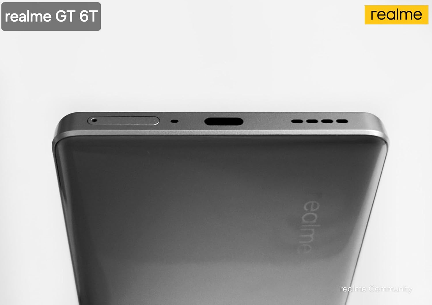 Processor Snapdragon 7+ Gen 3 Processor CPU:4nm Process, UP to 2.8GHz GPU: Adreno 732 @950MHz Memory & Storage RAM: 8GB LPDDR5X || ROM : 128GB UFS 4.0 Display 6000nit Hyper Display Screen Size: 17.22cm(6.78inch) Brightness: 1000nits (typ)/1600nits (HBM)/6000nits(APL) Refresh Rate: Up to 120Hz Touch Sampling Rate: Up to 2500Hz Resolution: 2780*1264 Screen-to-body Ratio: 94.20% Contrast ratio:typ 5000000:1 Color gamut:DCI-P3 100% Colors:1.07 billion (10bit) Protection:GGV2 Charging & Battery 120W SUPERVOOC Charge Includes a 11V/11A Charging Adaptor USB Type-C Port 5500 mAh (Typical) Massive Battery 2*2750mAh(typ) equivalent to 5500mAh battery capacity 2*2680mAh(min) equivalent to 5360mAh battery capacity Camera Sony 50MP Main Camera Sony LYT-600 Primary Camera Focal Length: 25.56mm Pixels: 50MP FOV: 79° Aperture: f/1.88 Lens: 5P Sensor size: 1/1.953” Sony IMX355 8MP Ultra Wide-angle Focal Length: 15.91mm Pixels: 8MP FOV: 112° Aperture: f/2.2 Lens: 5P Camera Photography Function: Photos, portraits, night scenes, High Pixel, panorama, Long Exposure Photo, Professional Mode, Street Shooting Mode, Super Text, videos, Movie mode, multi-scene videos, time-lapse photography, Slo-mo video || Video Recording: 4K@60fps/30fps, 1080P @60fps/30fps, 720P@60fps/30fps; Video stabilization supports EIS/OIS, 1080P@60fps; Movie mode supports 4K@30fps; Video slow motion supports 1080P@120fps, 720P@240fps; Time-lapse photography supports 4K@30fps, 1080P@30fps. Camera 32MP Selfie camera Sony IMX615 Focal Length: 21mm Pixels: 32MP FOV: 90° Aperture:f/2.45 Lens: 5P Camera Photography Function: Photos, portraits, night scenes, panorama, videos, multi-scene videos, time-lapse photography Video Recording: Maximum 4K@30fps, default 1080P@30fps, 720p@30fps (beautification is enabled by default) The front supports Video stabilization 1080P@30fps Celluar 5G + 5G Dual Mode SA/NSA Supported Frequency Bands: 5G NR: SA:n77/78/38/40/41(2496-2690MHz)/B66(2110~2180MHz)/N66(2110~2180MHz)/1/3/5/7/8/20/28 NSA:n77/78/38/40/41(2496-2690MHz)/1/3/5/7/8/20/28 4G LTE FDD: B1/B2/B3/B4/B5/B7/B8/B12/B13/B17/B18/B19/B20/B26/B28/B66 TD-LTE: B38/B39/B40/B41(2496-2690MHz) 3G WCDMA: B1/B2/B4/B5/B6/B8/B19 2G GSM: 850/900/1800/1900 Wireless Wireless Supports 2.4Ghz/5GHz Supports Wi-Fi 6 (IEEE802.11ax) Supports BT5.4, BLE Supports HFP HSP A2DP AVRCP HID PAN OPP MAP PBAP GATT NFC: card mode, reader mode Navigation Dual Frequency GPS GPS:L1+L5 GALILEO:E1+E5a Beidou:B1I+B1C+B2a QZSS:L1+L5 NavIC Glonass Size & Weight Length: 162 mm Width: 75.1 mm Depth ≈ 8.65 mm Weight ≈ 191 g Audio Super Linear Dual Speakers o-reality Dual-mic Noise Cancellation Hi-Res Audio Certification Buttons & Ports 2 Nano Card Slots USB Type-C Power Button Speaker 1 Speaker 2 Dual Microphones 1 Dual Microphones 2 Volume up / down Sensors & System Geomagnetic Sensor Front and rear dual light sensors Front and rear dual color temperature sensors Proximity sensor AcceLeration sensor Gravity sensor Gyroscope sensor Support step counting function || realme UI 5.0 Based on Android 14 Packing List realme GT 6T 120W SUPERVOOC Charge USB Type-C Cable Protect Case SIM Card Tool Screen Protect Film Quick Start Guide Important Product Information (including the Warnty Card)