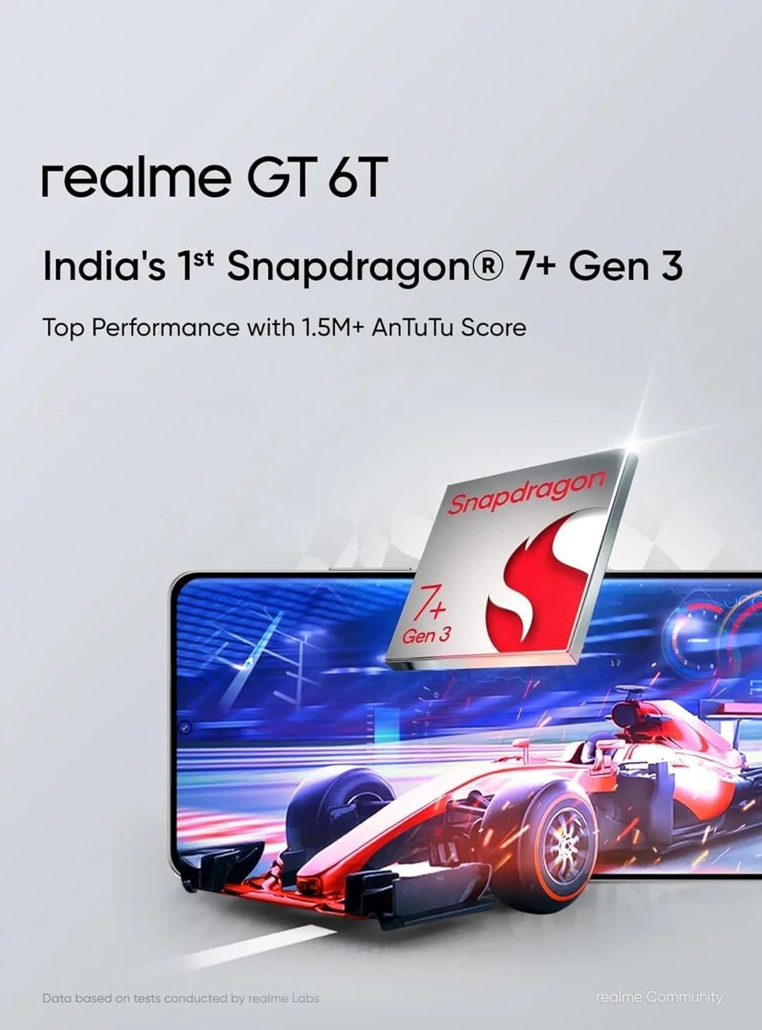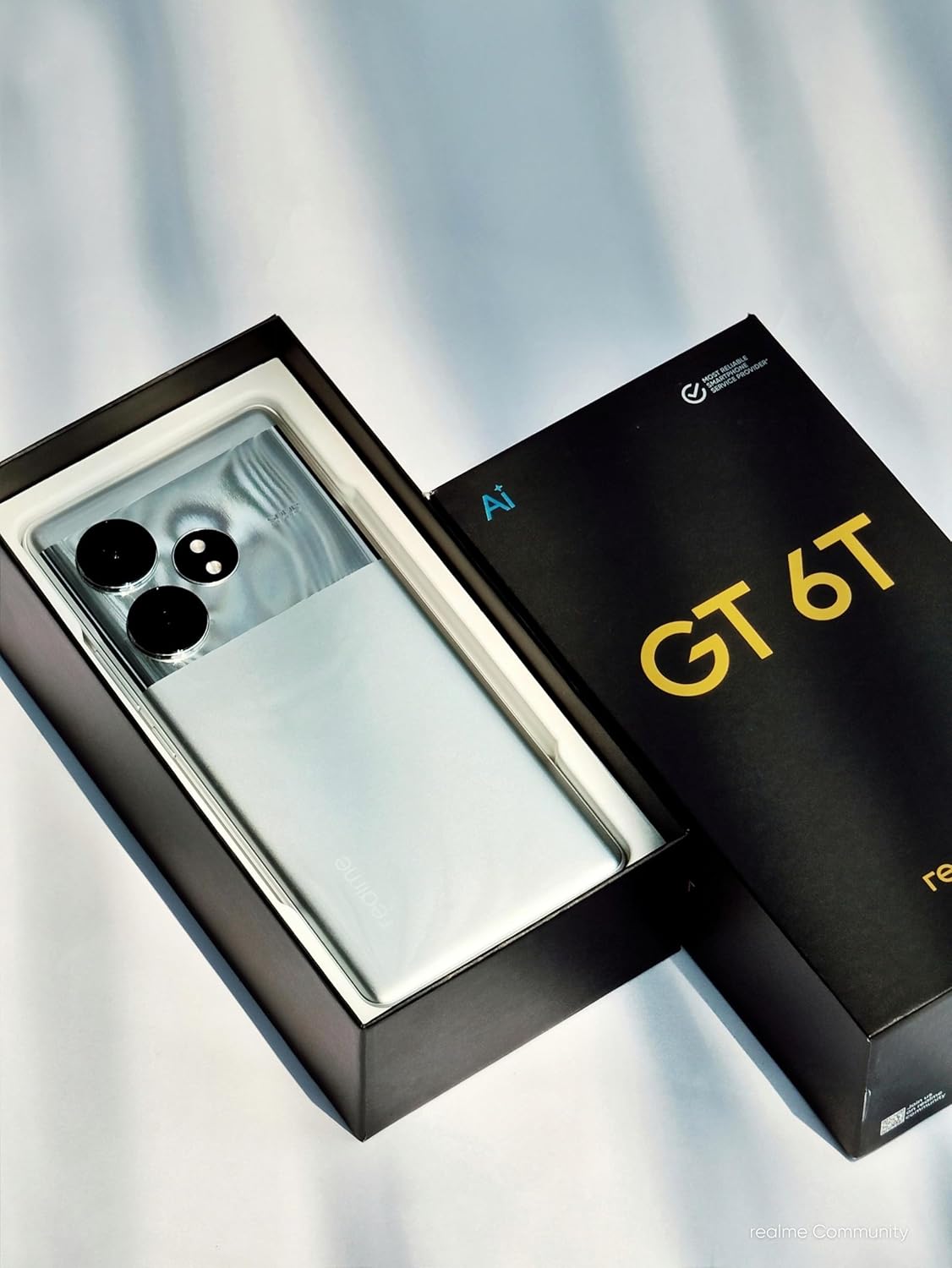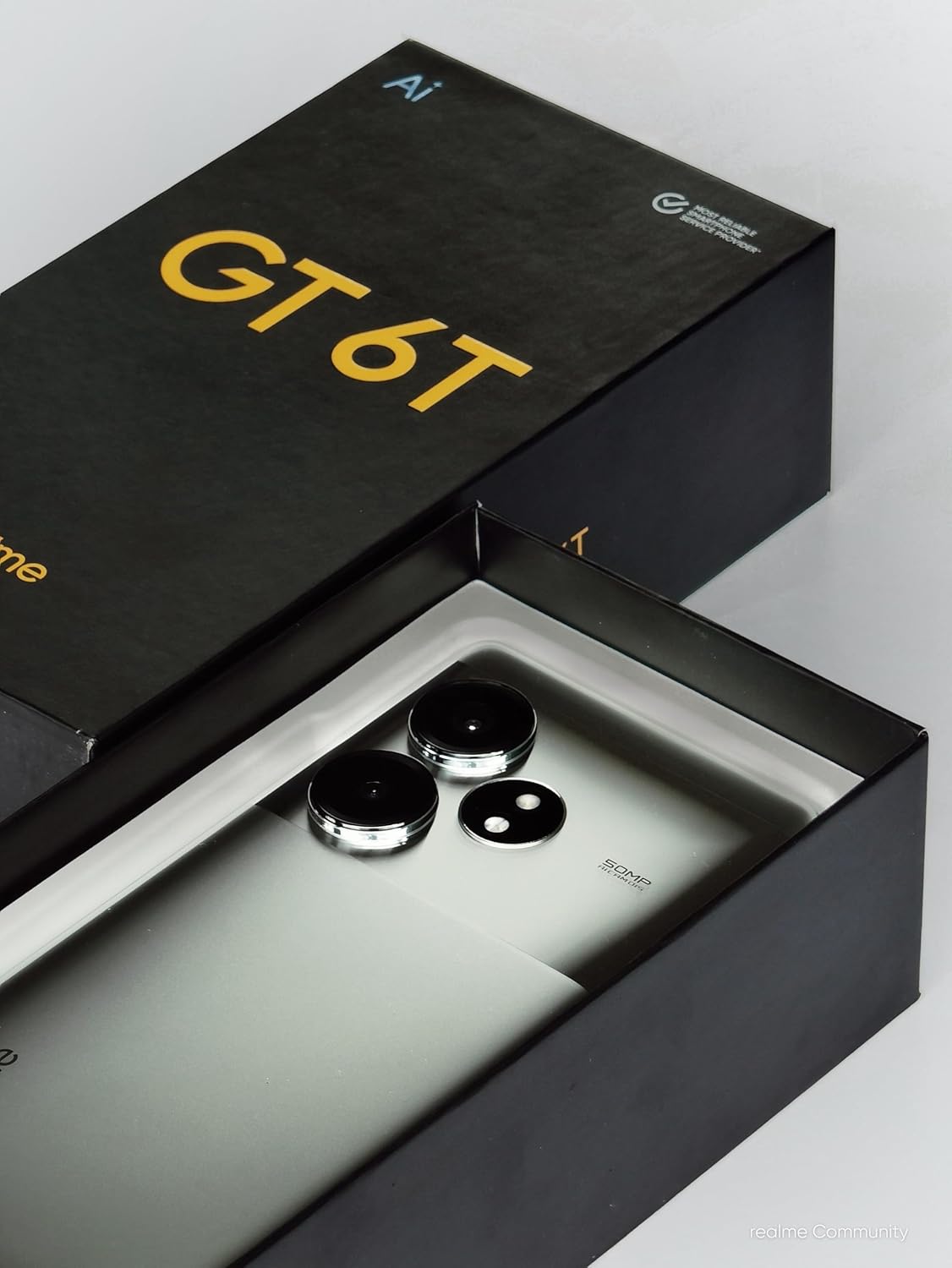 Running on realme UI 4.0 based on Android 14, the GT 6T offers a smooth and intuitive user experience. The interface is clean, with zero bloatware, and offers a range of customization options. Features like GT Mode 5.0, Air Gestures, Flash Capsule, File Dock, Smart Image Matting, App-specific Volume, Dark Mode, Always-On Display, Intuitive animations, Phone Link, Trinity Engine, and enhanced privacy controls add to the device’s appeal. And also 3 Years of OS Updates and 4 Years of Security Updates for Better Experience in Future.
