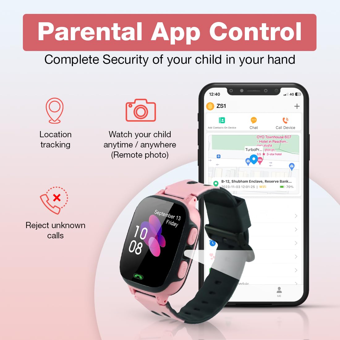 [Geo-Fence In/Out Smart Watch] : Create electronic boundaries around areas like home or school with Geofencing. Receive notifications when your child enters or leaves these zones, enhancing their safety.