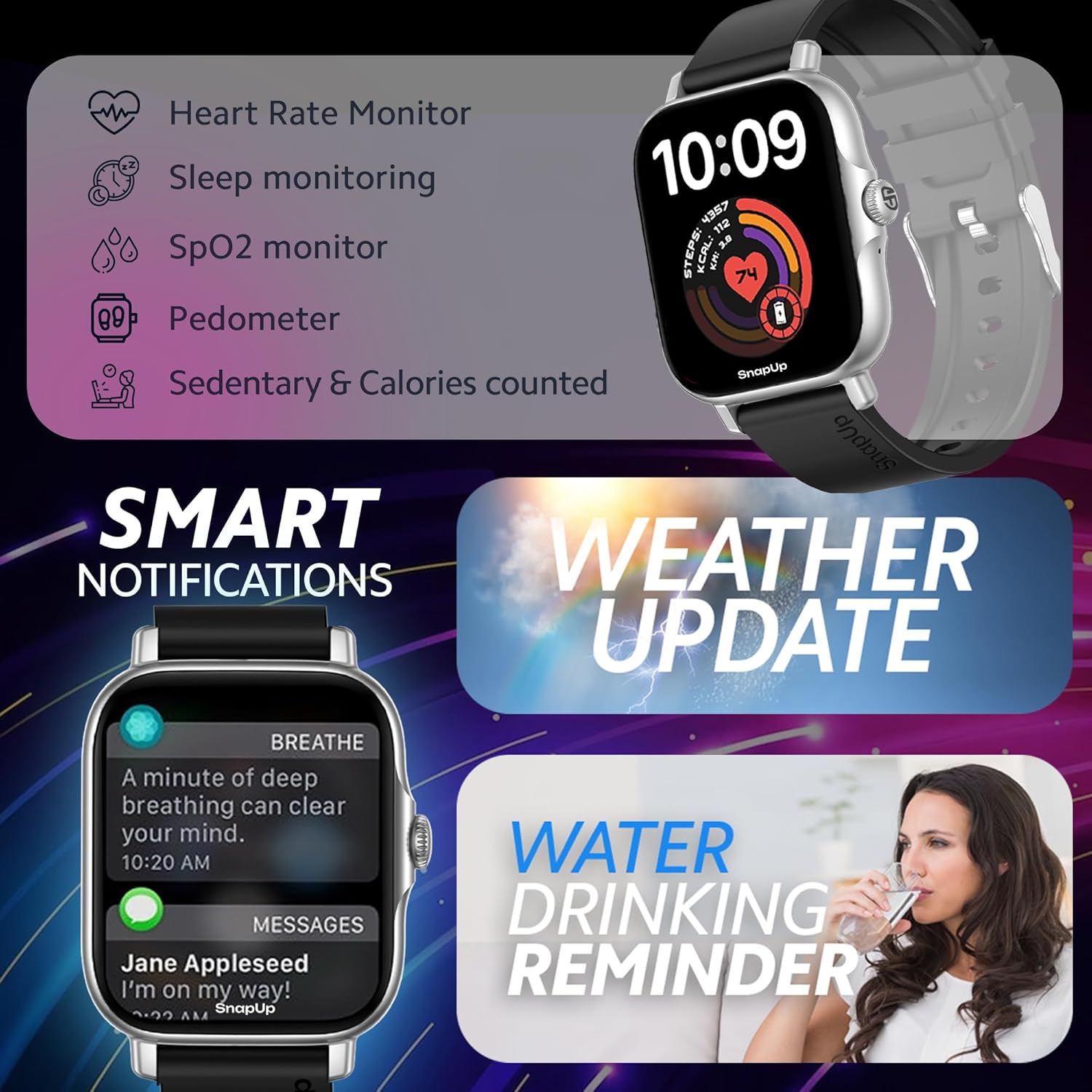 Health Tracker – SnapUp Turbo Smartwatch comes with real time 24*7 SPO2 / Blood Oxygen tracking, Dynamic Heart Rate Monitoring with the latest Technology (If a patient is suffering from Covid 19 please use a medical device prescribed by the Doctor)