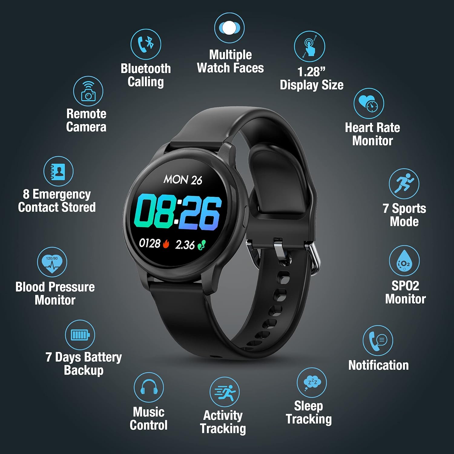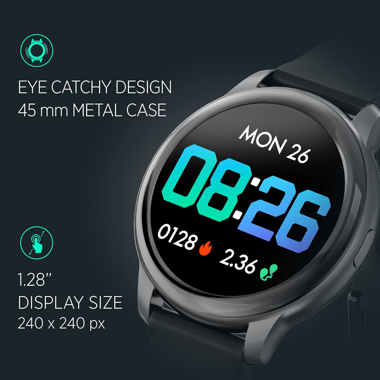 [Bluetooth Calling]: Timex Fit 2 comes with Built-in microphone and speaker to call via Bluetooth. You can use the watch to dial & answer the calls without reaching to your phone. It also allows you to save upto 8 contacts on the watch itself;[Full-touch display and metal body]: It comes with a 1.3″ full capacitive touch color display, that supports taps and swipes, for a smooth operating experience. The watch has a beautilful round, full metal body, that makes for a very stylish appearance. Its powerful battery gets fully charged within 1 hour, for upto 10 days of use